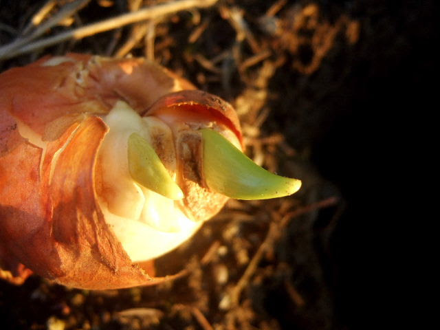“Gotta little spade I can borrow?” I grin, hold out a hand full of bulbs.