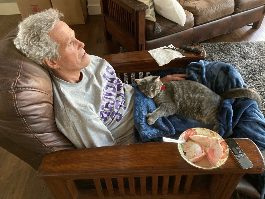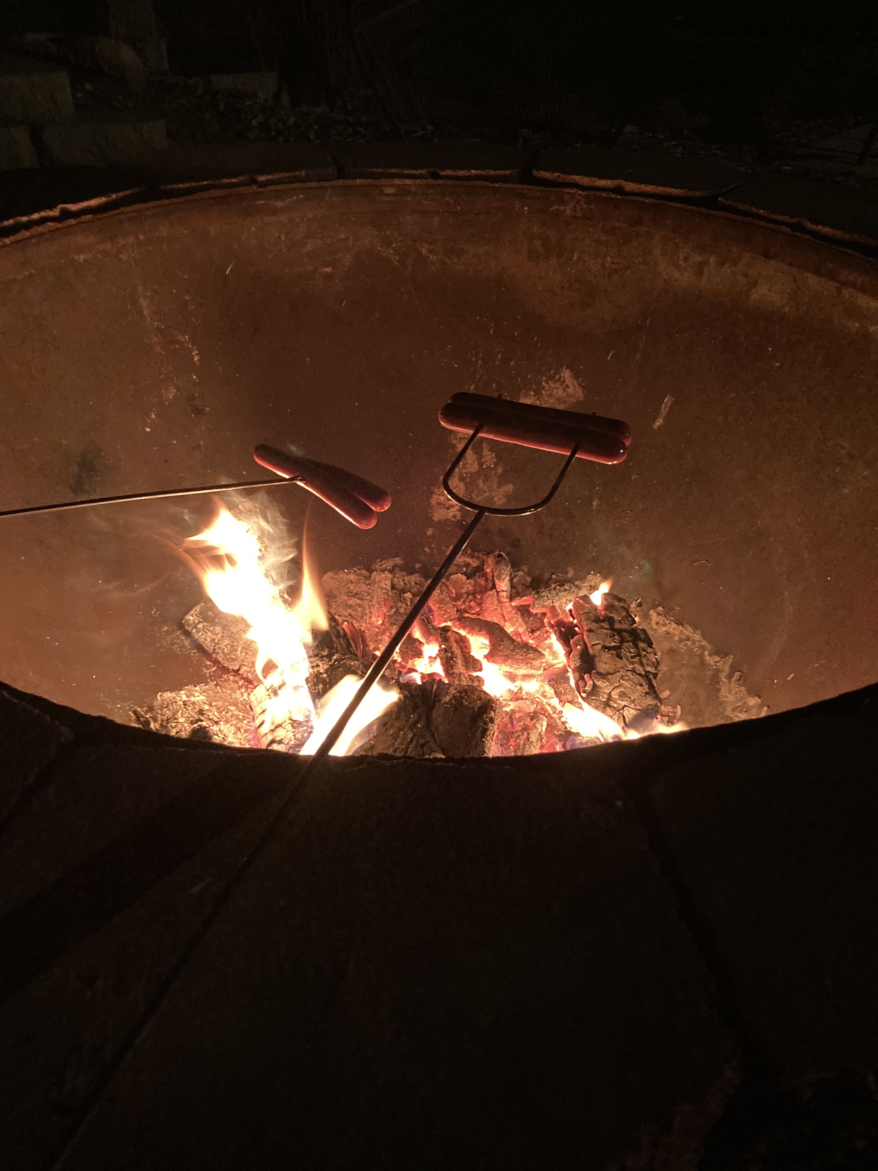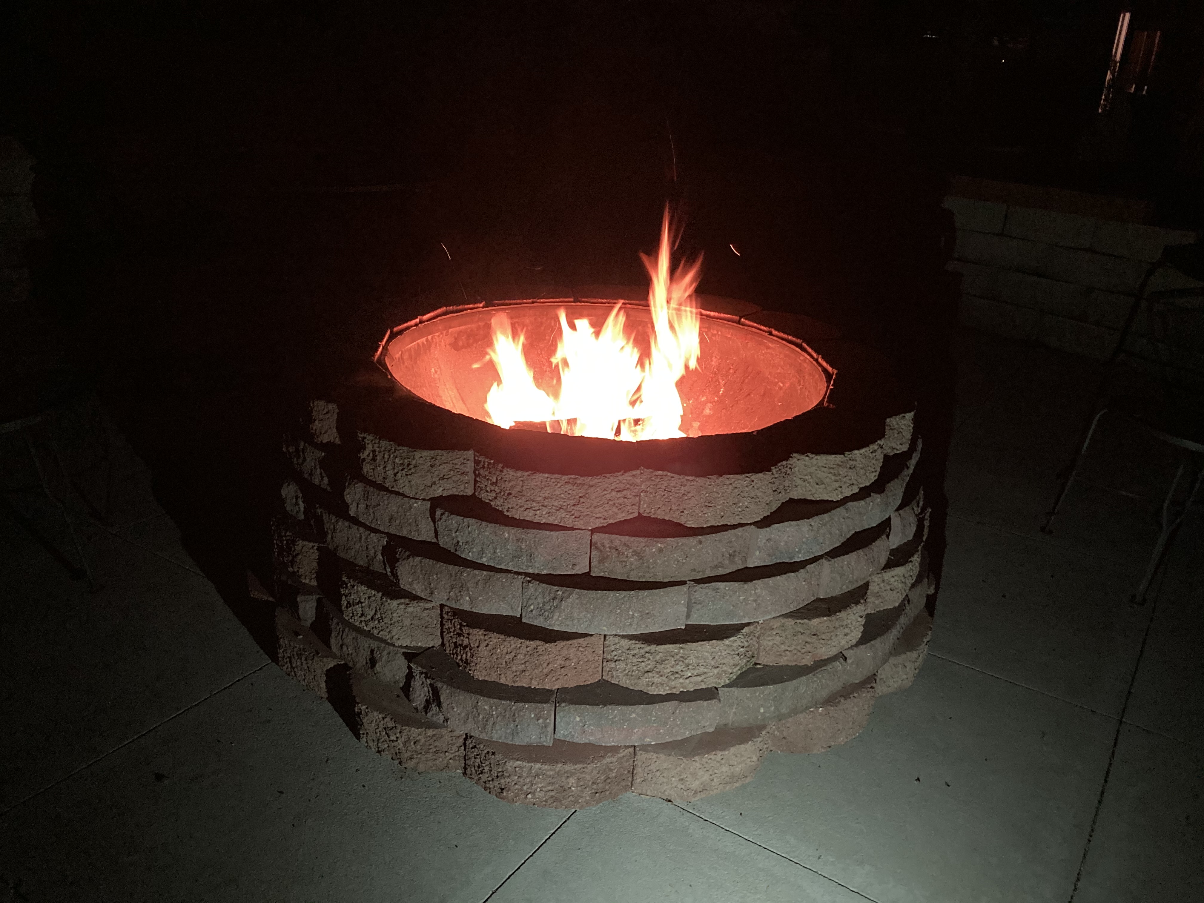 I am grateful for Sam’s new firepit that he built this week out of the end of a propane tank and some free landscape wall stones he gathered around town.