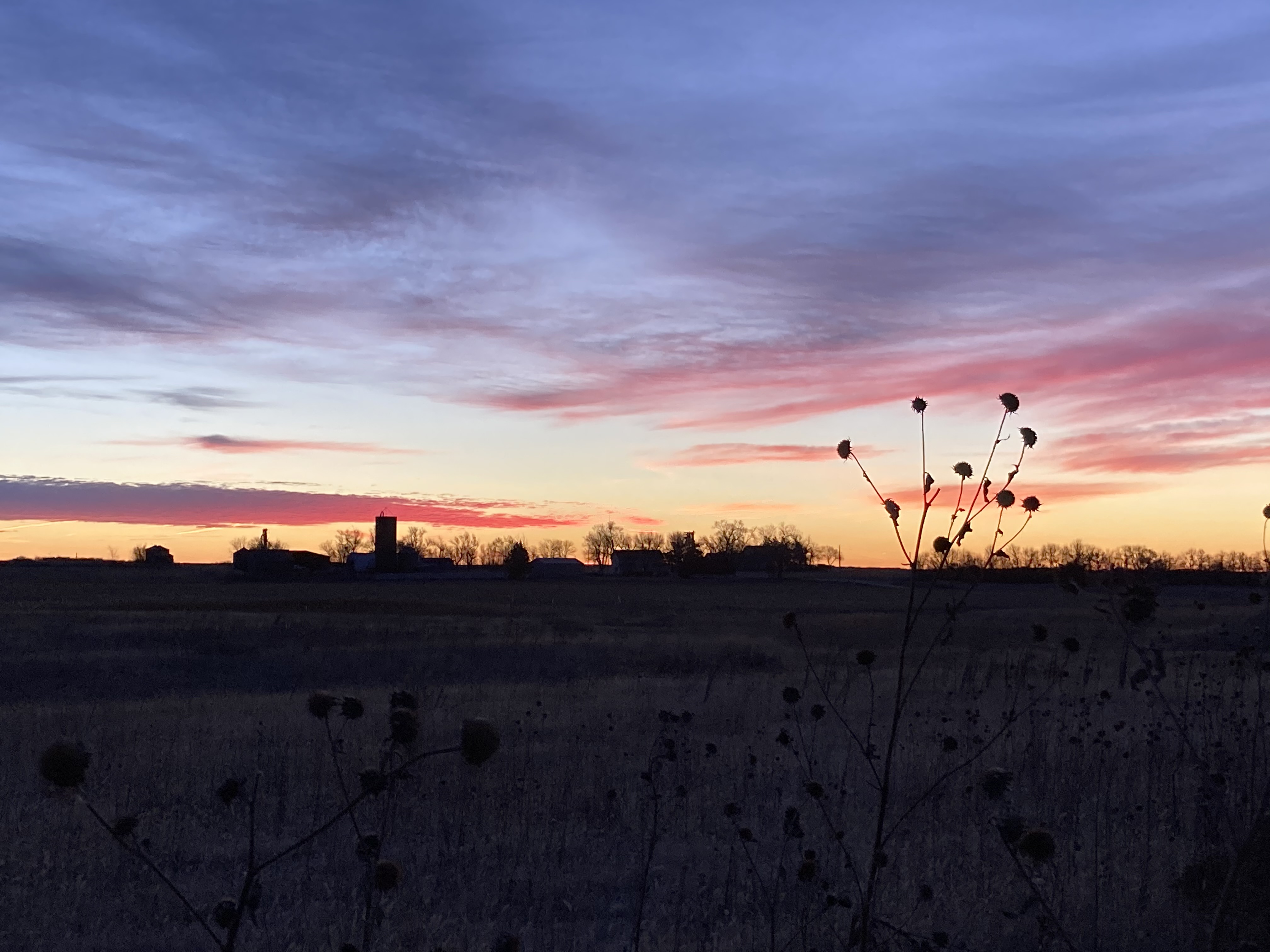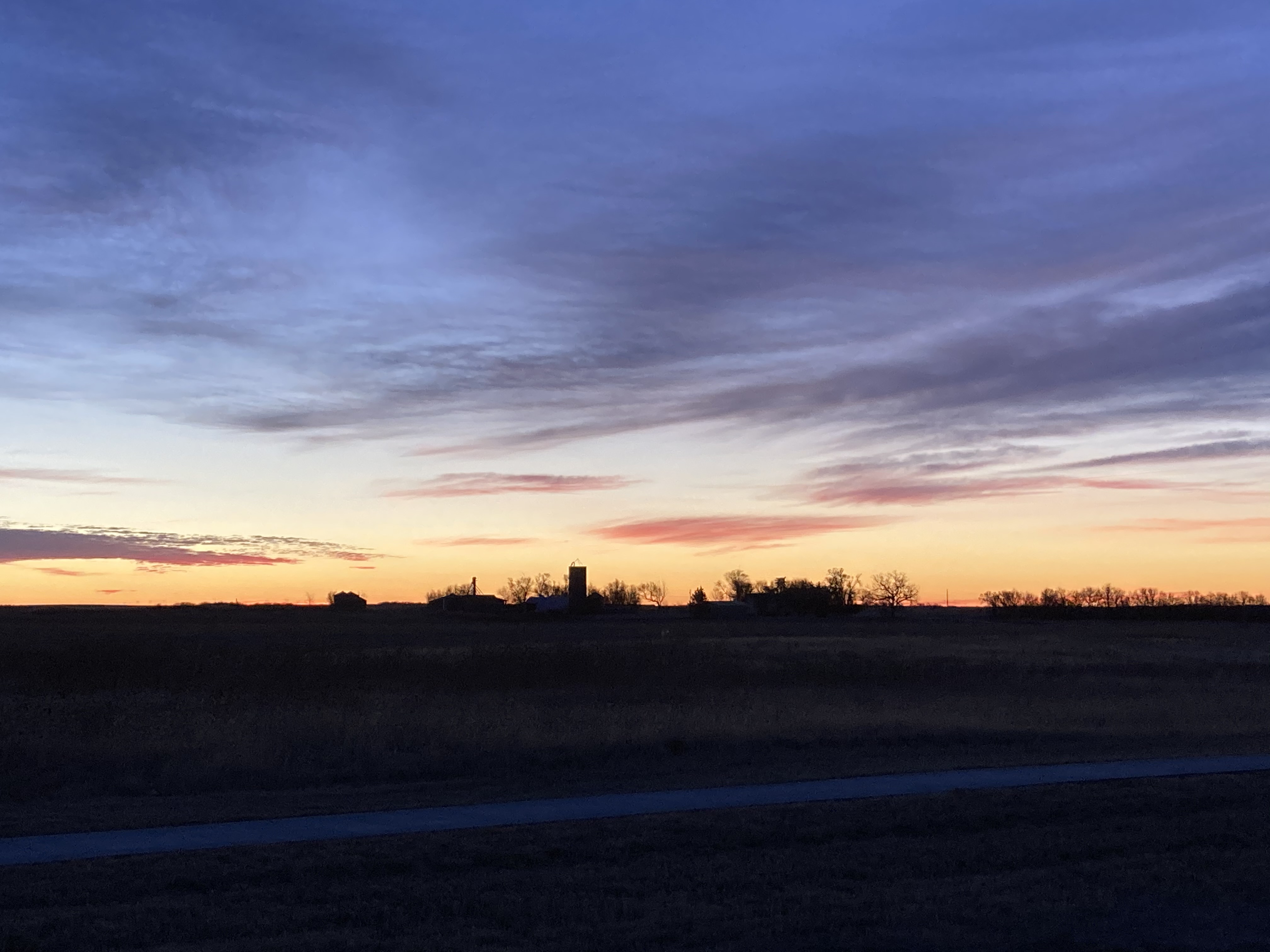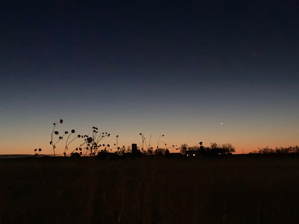 My sunrise wasn’t there to greet me, but as I turned back east to head home, I was reminded of my years in Oklahoma when I began to love the beauty of naked trees. When leaves are in full season, it is impossible to see the complexity of the tree and how beautiful the shape and the branches can be. The backdrop this morning was a blanket of clouds, and I immediately sensed that God’s sunrise was still there, as were His stars. They were just on the other side of His cloud blanket that made me feel safe and secure. Some days I need to feel safe and secure and a cloudy, cold day is a good day to stay inside and appreciate all things home.