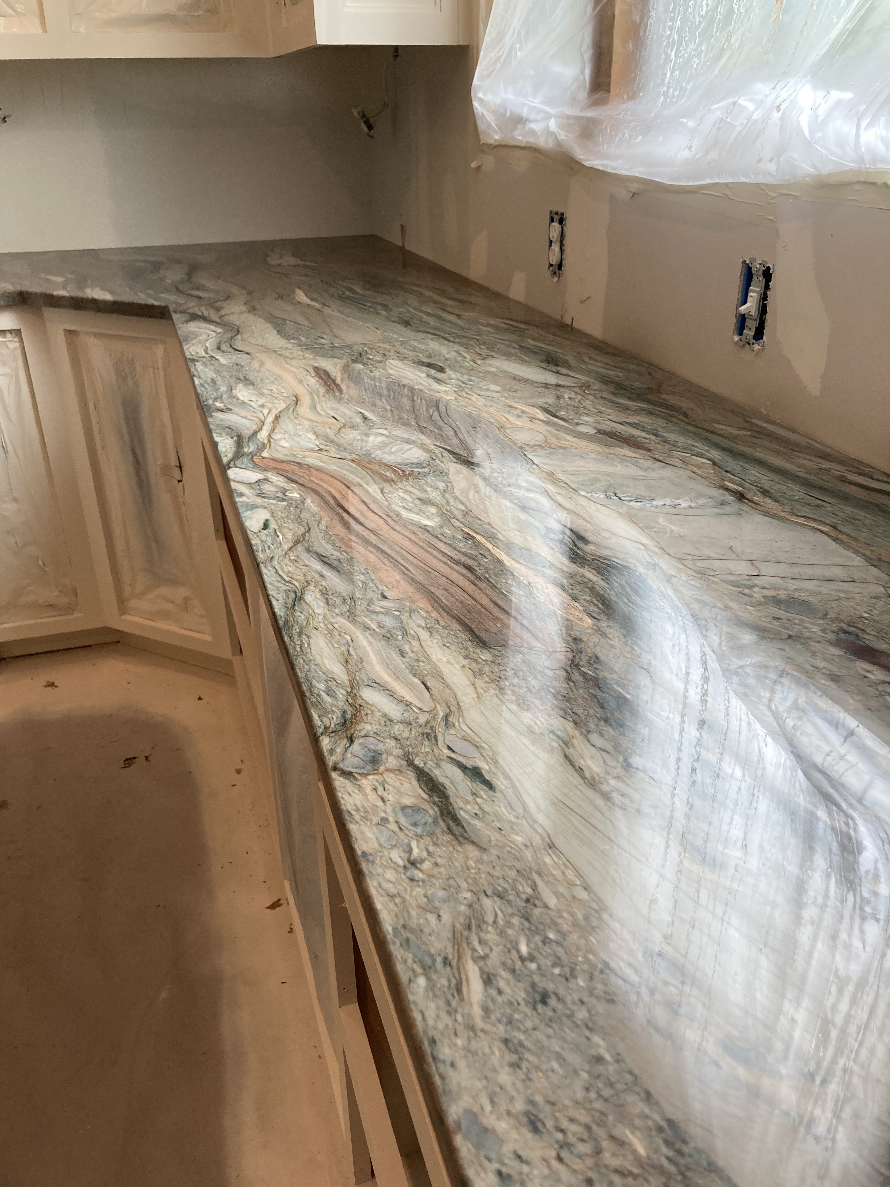 I could be very ungrateful for the summer flu I contracted that has kept me in my bedroom, now going on 10 days, but instead, I choose to be grateful for the opportunity to be home and witness the arrival of our granite.