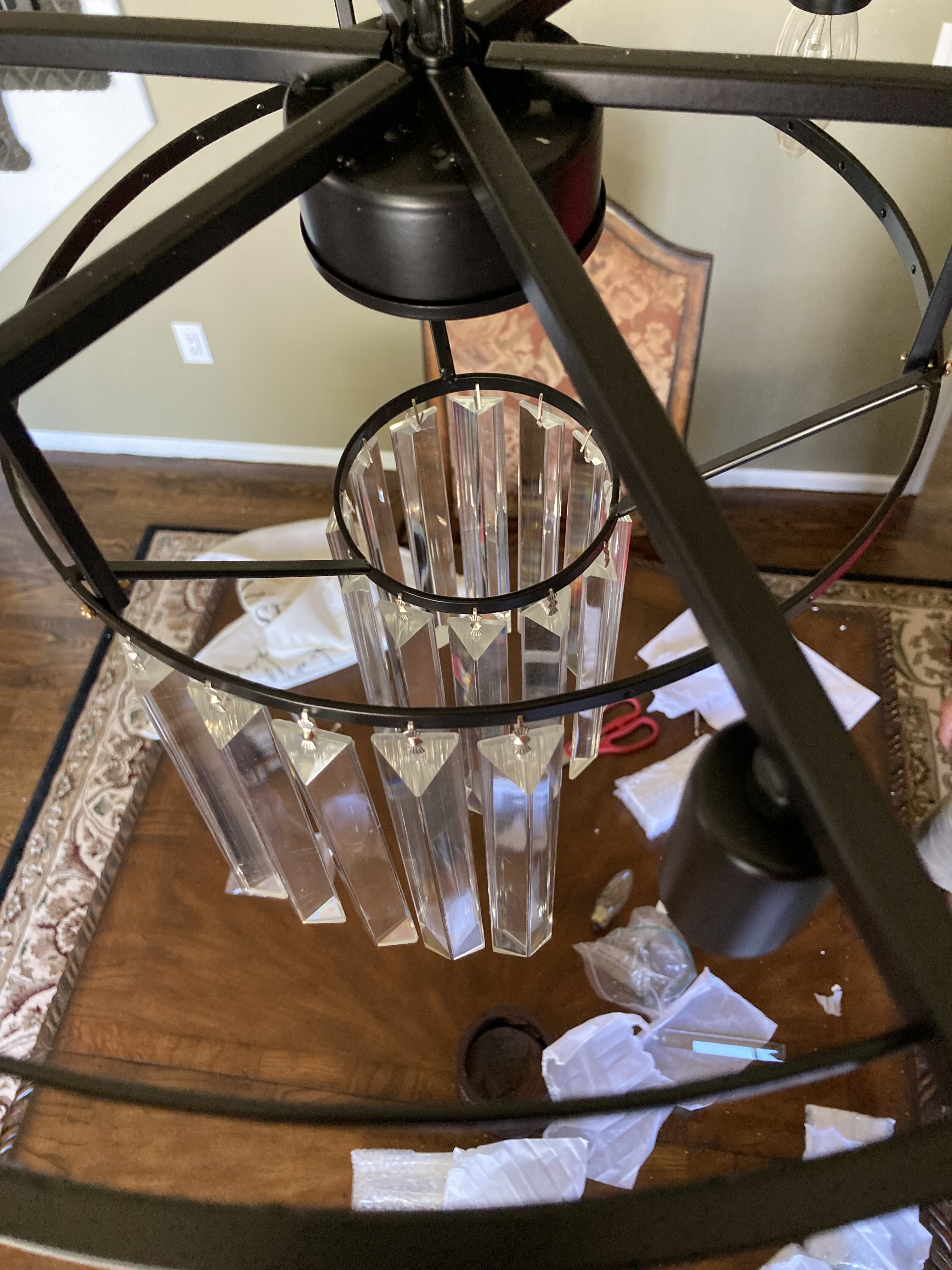 I am grateful Sam knows how to install a light. I can hang the crystals, but he knows how to do the real deal. That has absolutely nothing to do with bumpers and fenders and bubble wrap, except for the fact that it was surrounded in bubble wrap and styrofoam.