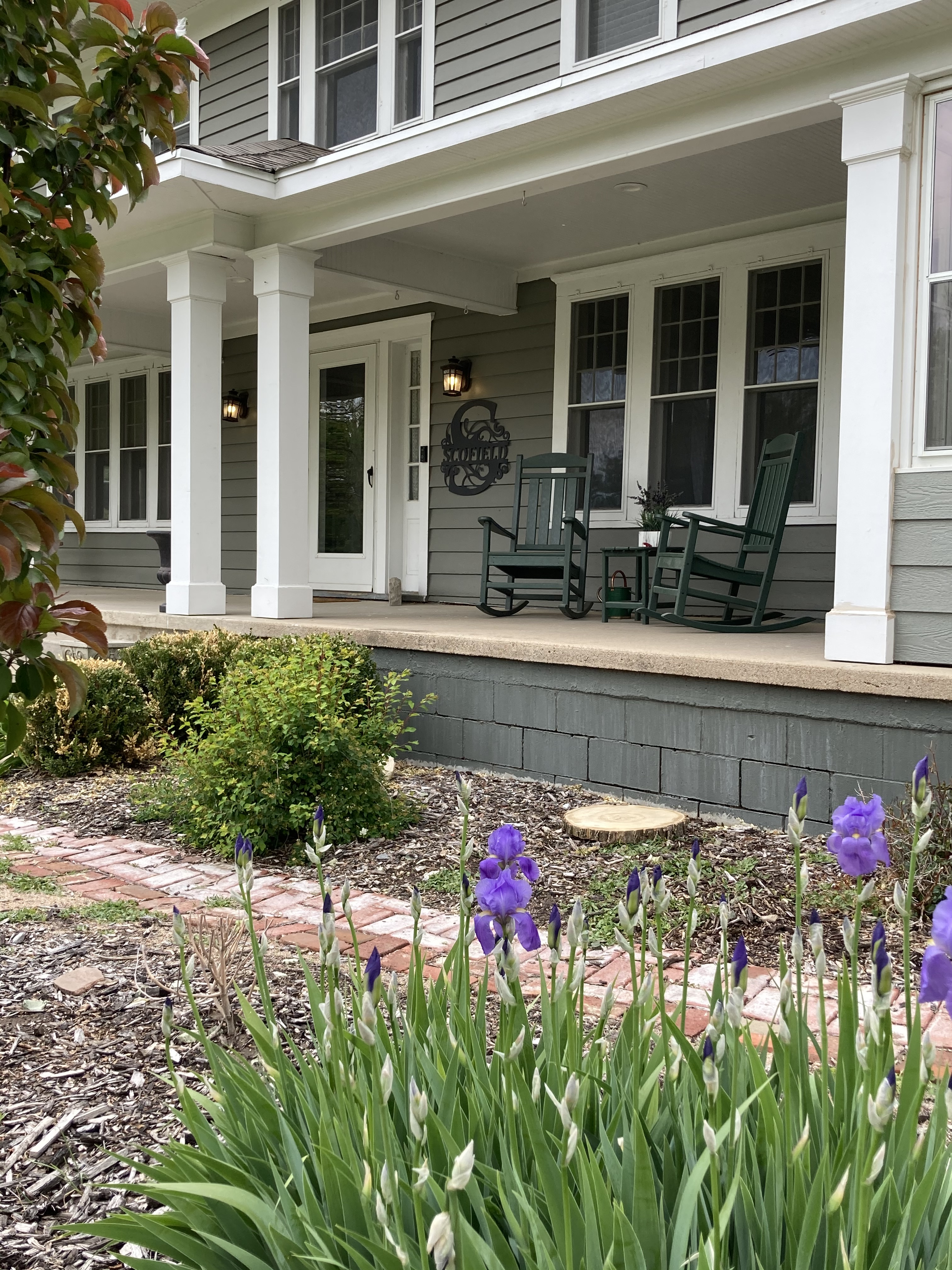 We bought this gem in the summer of 2016. When we pulled up in front, Sam just knew it was the right one. He has a thing in his brain called “vision.” And he just knew. I went along, because I learned early on he has a thing. His golf is not golf – it is projects. And he started right away on clearing the yard, hauling in dirt, cutting down the dead and overgrown, replanting…because vision+farmer at heart = beautiful yard. And then he began dreaming about the exterior and the interior, and six years later, The Scofield looks like this.