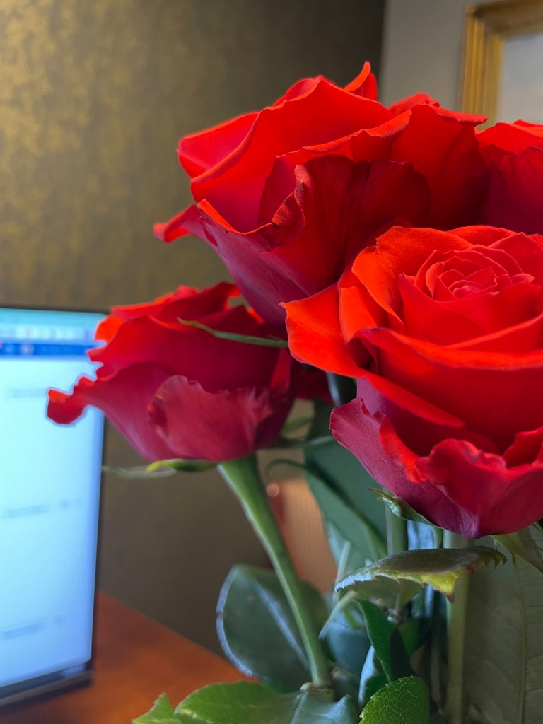 I am grateful for a surprise that walked into my office, carrying roses.